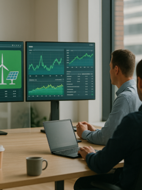 Чрез модерни технологии и специализирани решения в сферата на енергийната търговия, ние даваме възможност на всеки участник на пазара да стане част от глобалния преход към чиста енергия. С нашата платформа търговията с енергия става: